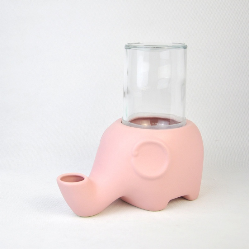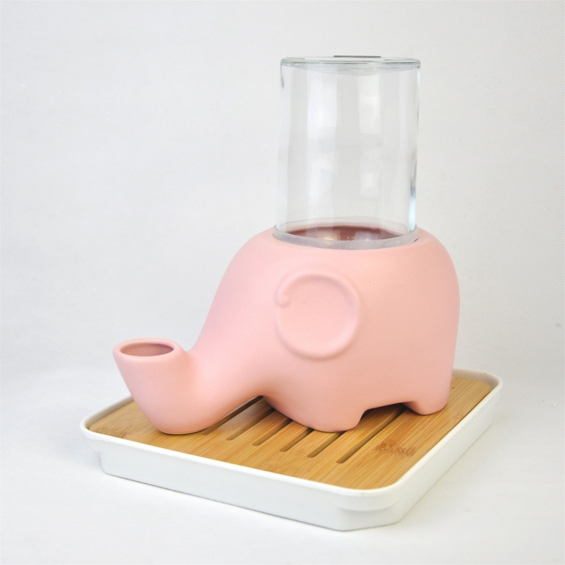 不湿下巴饮水器 大象饮水器加菲猫专用大脸猫扁脸猫喝水碗防打翻加防湿陶瓷猫咪水碗喂水器宠物喝水器 马卡龙黄 玻璃瓶