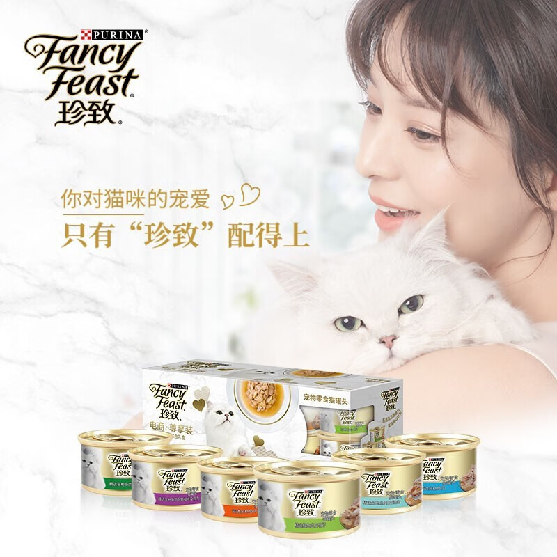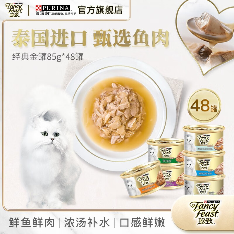 珍致(FancyFeast)猫罐头 进口成猫猫湿粮罐头猫零食 48罐 尊享5 1混合装85g*48罐