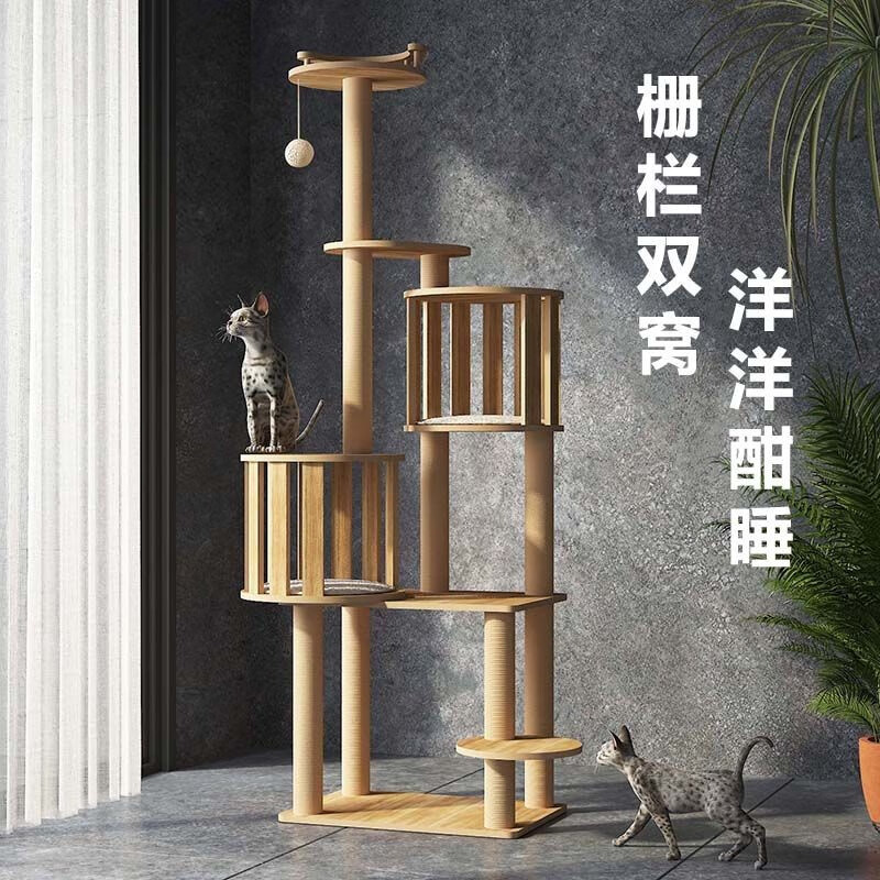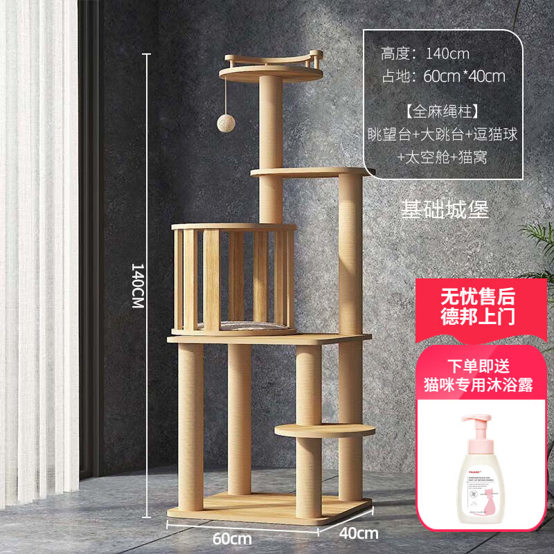 PAIAGO/派阿哥猫爬架猫窝猫树一体猫咪架超大跳台架子柱实木太空舱猫别墅 基础款(140*60*40) 【城堡系列】主体颗粒板 黄麻 12厘米硬纸筒柱子