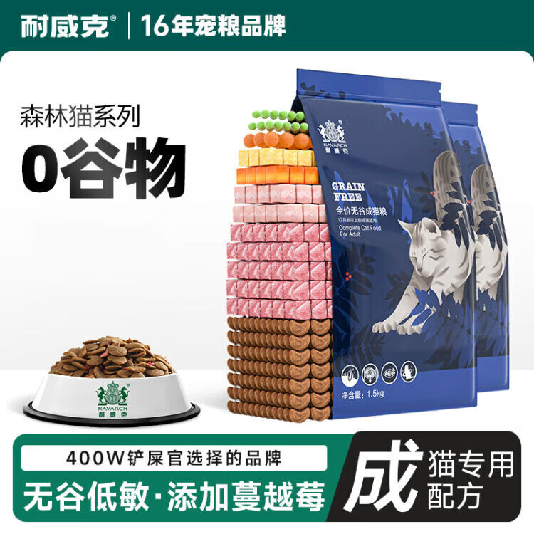 耐威克猫粮 成猫无谷猫粮3kg(1.5kg*2包) 全价天然粮 低敏