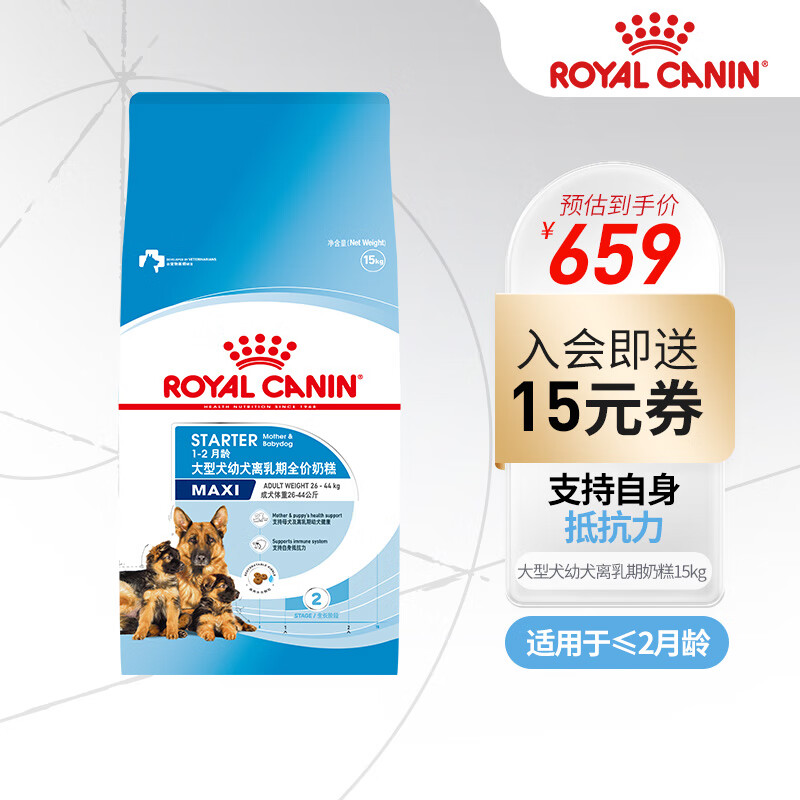 皇家(ROYAL CANIN)狗粮幼犬奶糕(1-2个月) 大型幼犬通用 支持消化健康 15kg