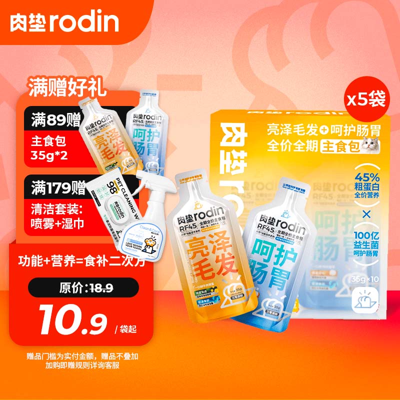 肉垫Rodin RF45全期全价主食包湿粮幼猫成猫猫咪主食罐主食肉酱包 鸡肉猫草 牛肉褐藻【35g*10包】