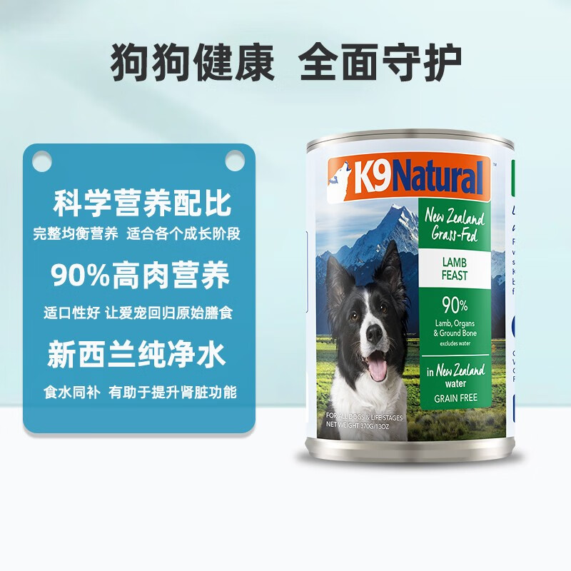 【顺丰发货】K9Natural 新西兰原装进口狗罐头 成犬幼犬通用主食罐头 羊肉味370g