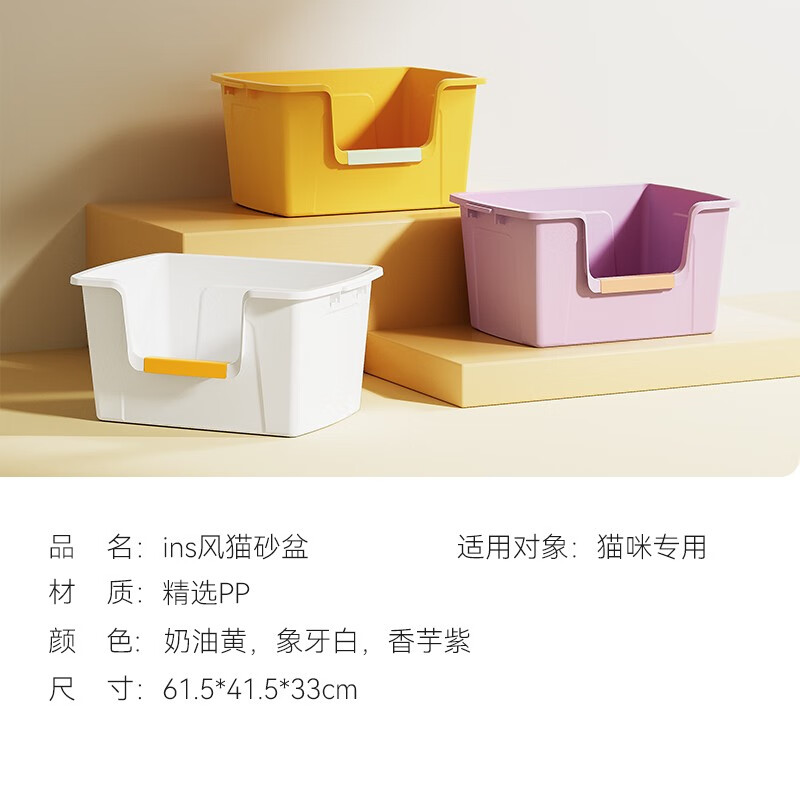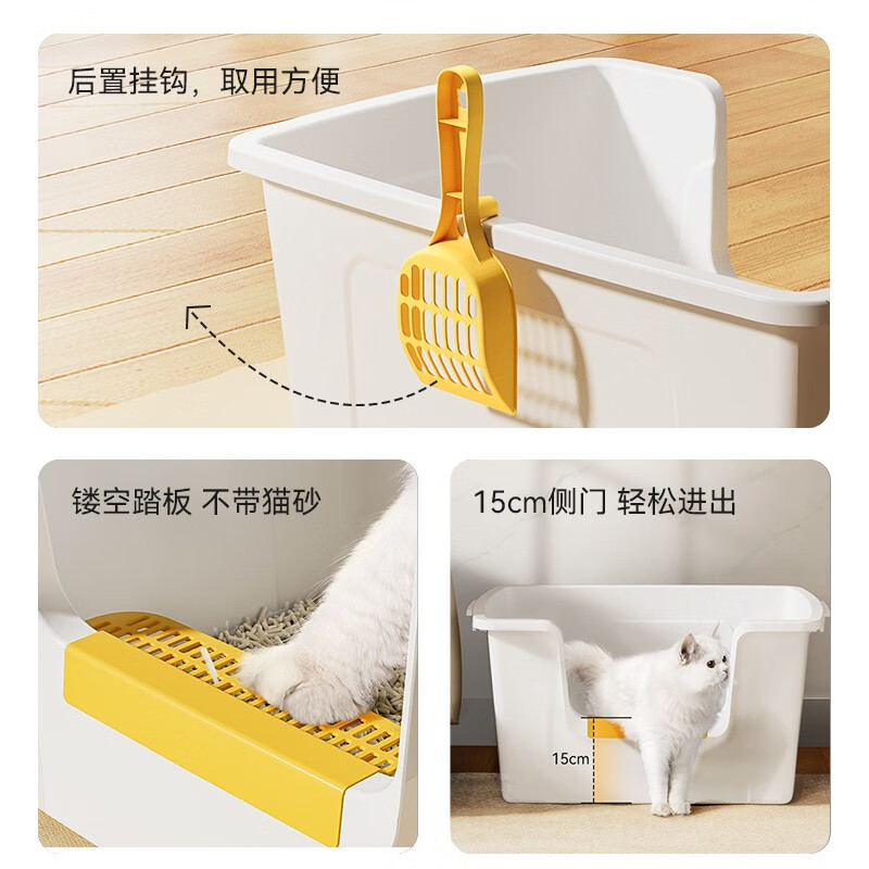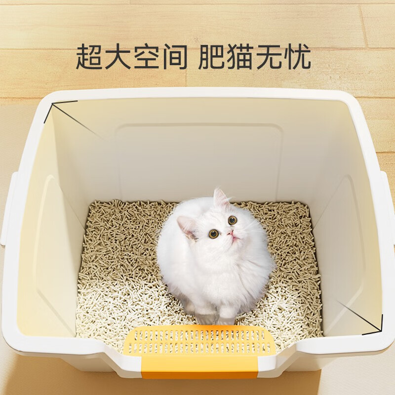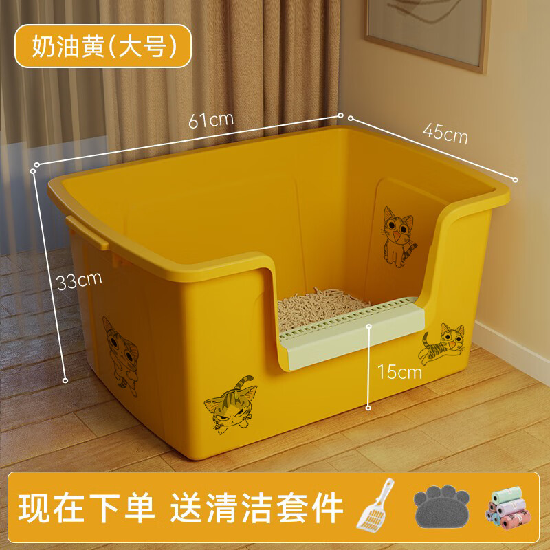 嬉皮狗(hipidog)巨型猫砂盆超大号卡通猫厕所半封闭防外溅开放式特大猫盆布偶用品 黄-大号【加高盆体,防溅砂】 无规格
