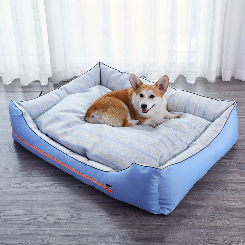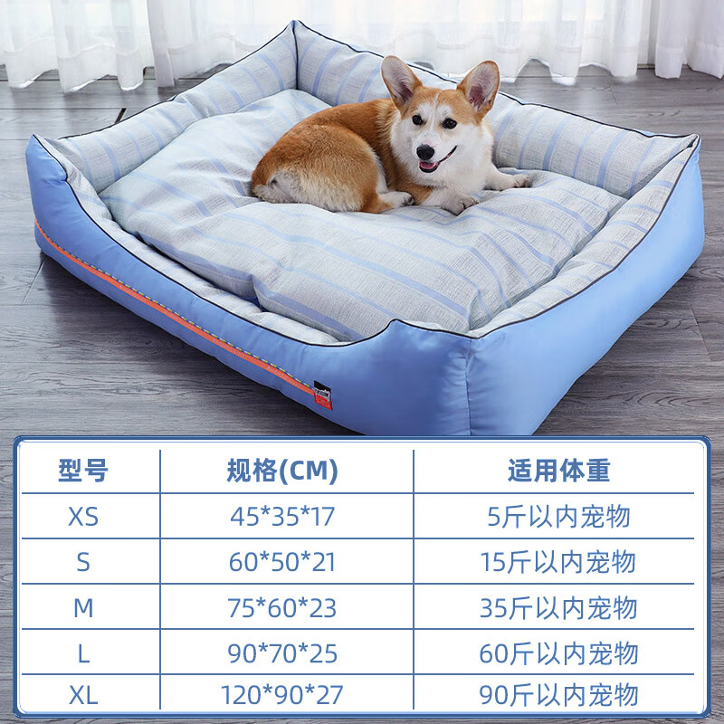hoopet狗窝四季通用泰迪柯基边牧金毛拉布拉多夏季春秋狗垫子可拆洗狗狗床小型大型犬冬天保暖 蓝海时尚冰丝凉席窝(清凉夏款) XL(建议80或90斤内)