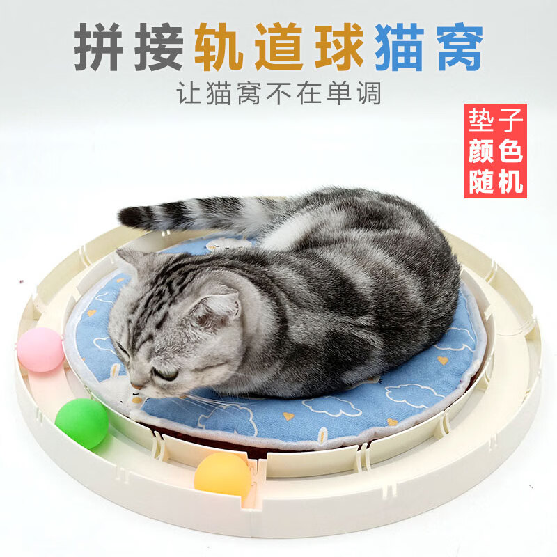 猫转盘球三层猫玩具自嗨益智宠物猫咪用品逗猫神器轨道球小猫幼猫 轨道球猫窝(垫子颜色随机)