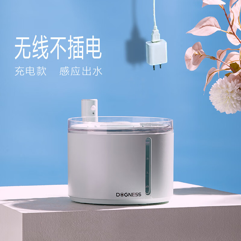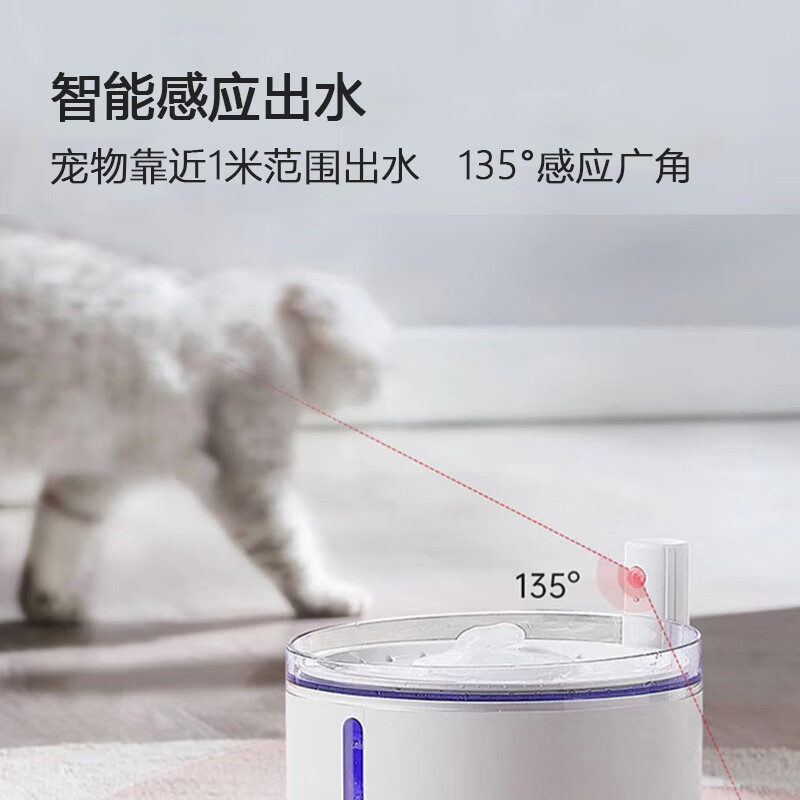 鹿凌青 猫咪饮水机 不插电智能饮水机无线充电式感应过滤器狗狗宠物喂水 D08丝绒白 2.2L