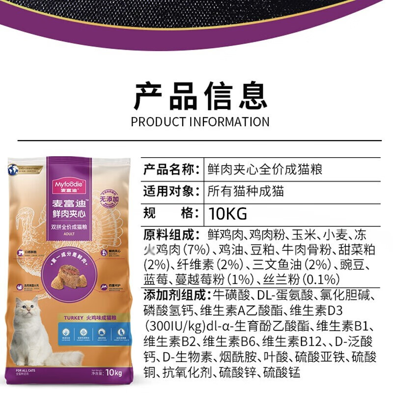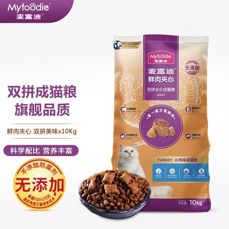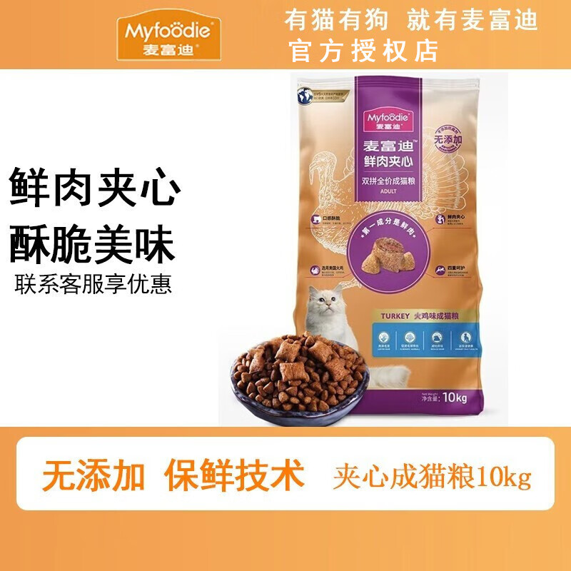 麦富迪猫粮 成猫粮10kg 鸡肉鲜肉夹心双拼美毛促排毛球泌尿道健康通用猫咪主粮20斤 鸡肉夹心双拼通用型成猫粮10kg