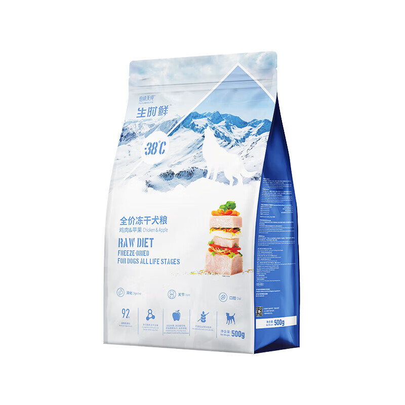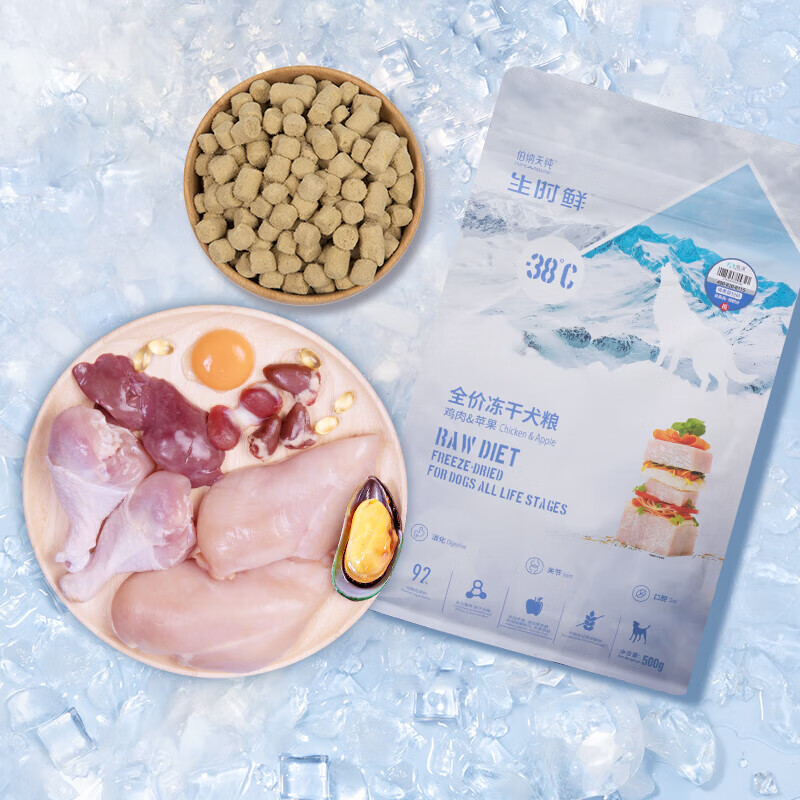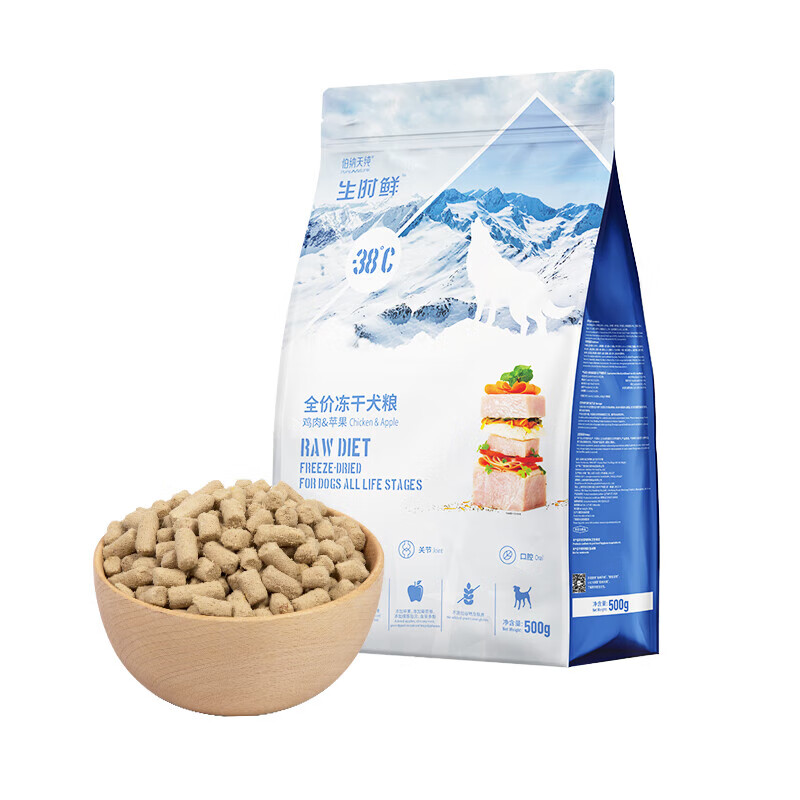 伯纳天纯生时鲜主食冻干狗粮500g成犬幼犬生骨肉冻干零食泰迪比熊 鸡肉苹果味 500g