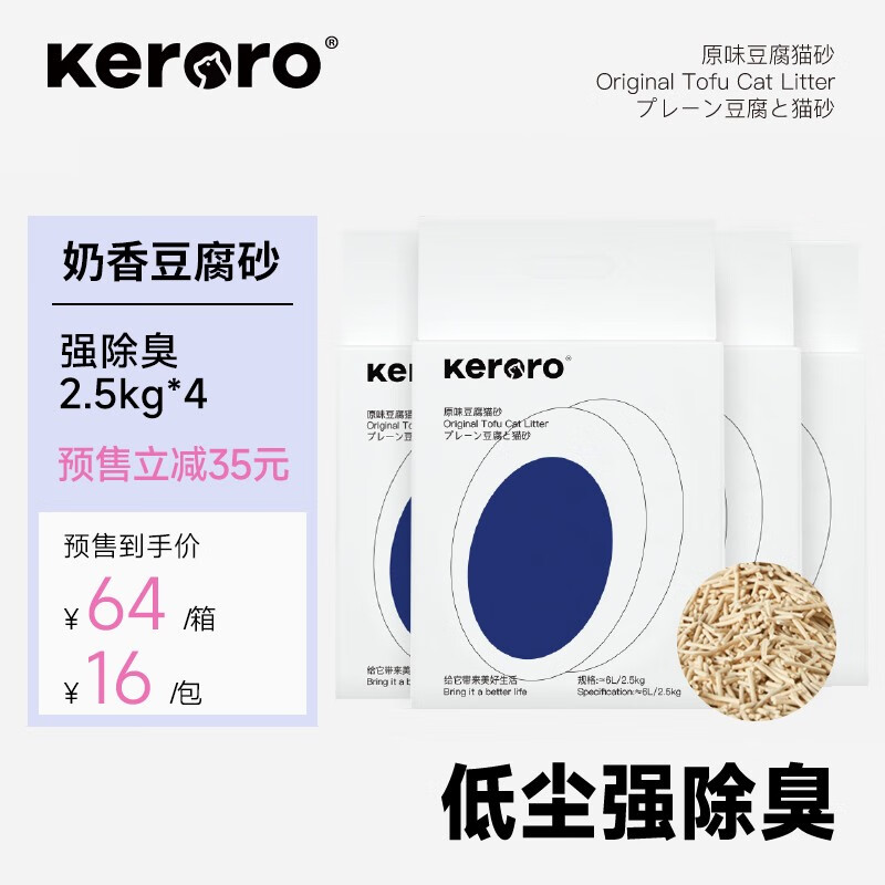 可噜噜(keroro) 豆腐猫砂原味奶香豆腐除臭低尘矿土混合砂 【新年】4包奶香豆腐砂20斤 整箱