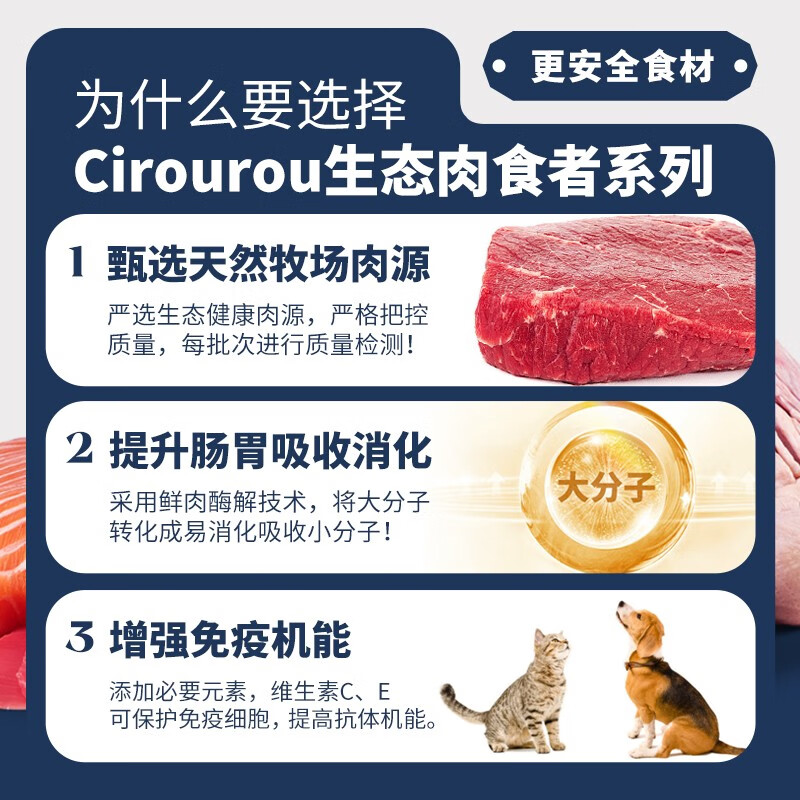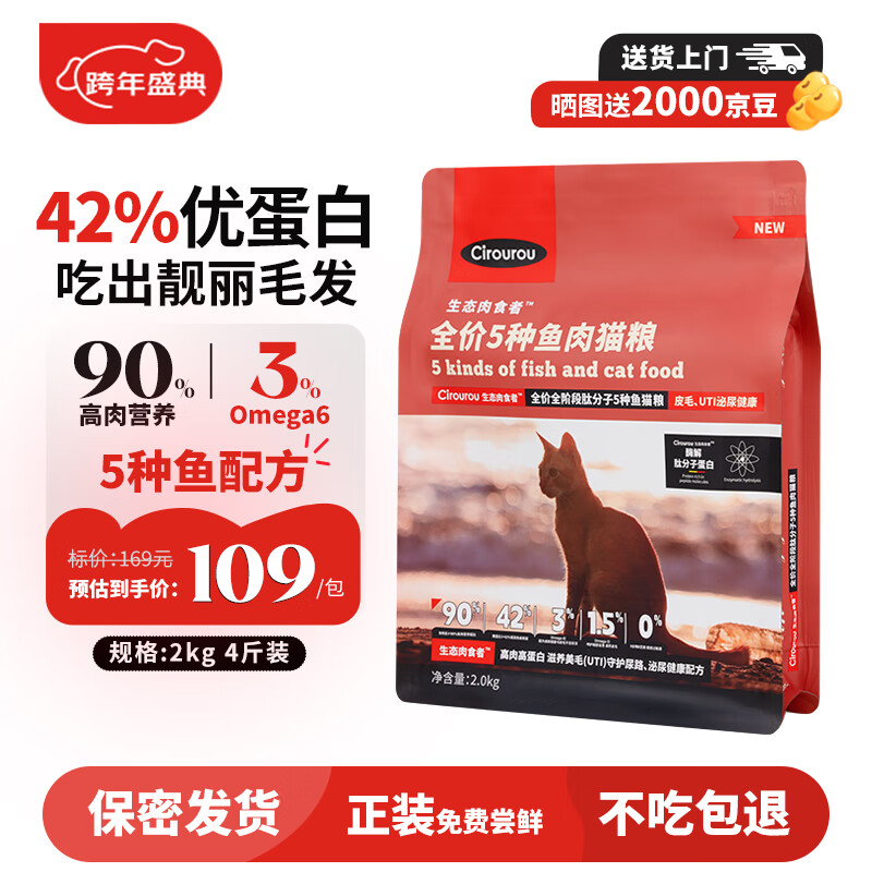 CIROUROU生态肉食者5种鱼全价全阶段高肉90%高蛋白42%成猫幼猫益生菌猫粮 12斤装【2KG/袋】