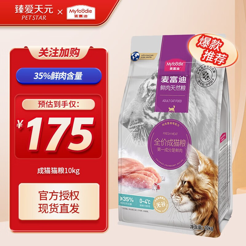 麦富迪(Myfoodie)猫粮鲜肉倍护系列无谷全价成猫猫粮添加风干黑肉粒35%鲜肉 成猫10kg