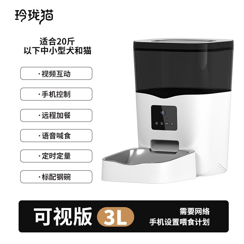 玲珑猫智能全自动喂食器猫粮狗粮定时定量app视频远程控制自动投食机器 3L视频版-不锈钢