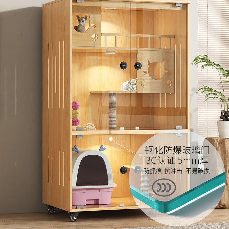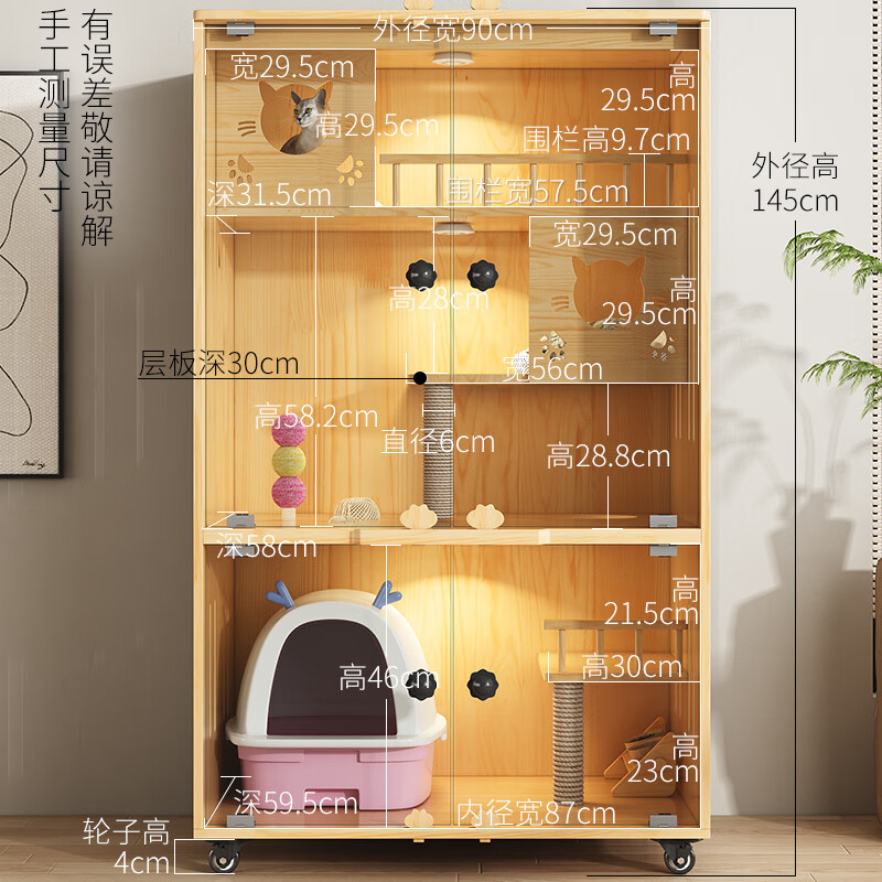 时光圈猫笼猫窝实木猫别墅猫柜子猫笼子家用宠物窝猫咪房屋145*90*60cm