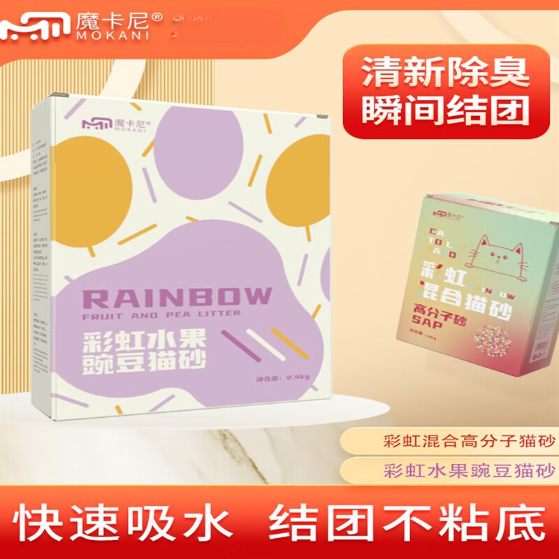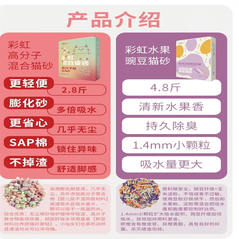 魔卡尼彩虹猫砂混合高分子猫砂太空豆腐猫砂可冲马桶猫咪用品 高分子混合猫砂【6袋】--单袋2.