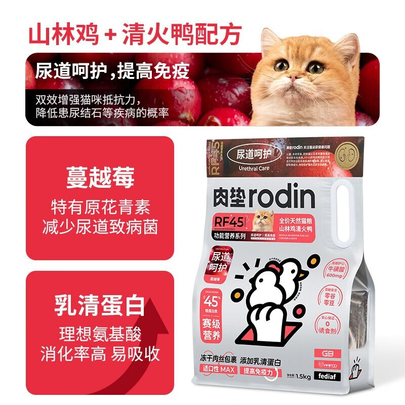 肉垫 猫粮成猫幼猫鲜肉猫粮全价功能营养无谷低敏防软便增肥 【软便克星】茶花鸡配方1.5kg 1.5kg*1袋