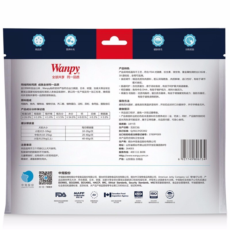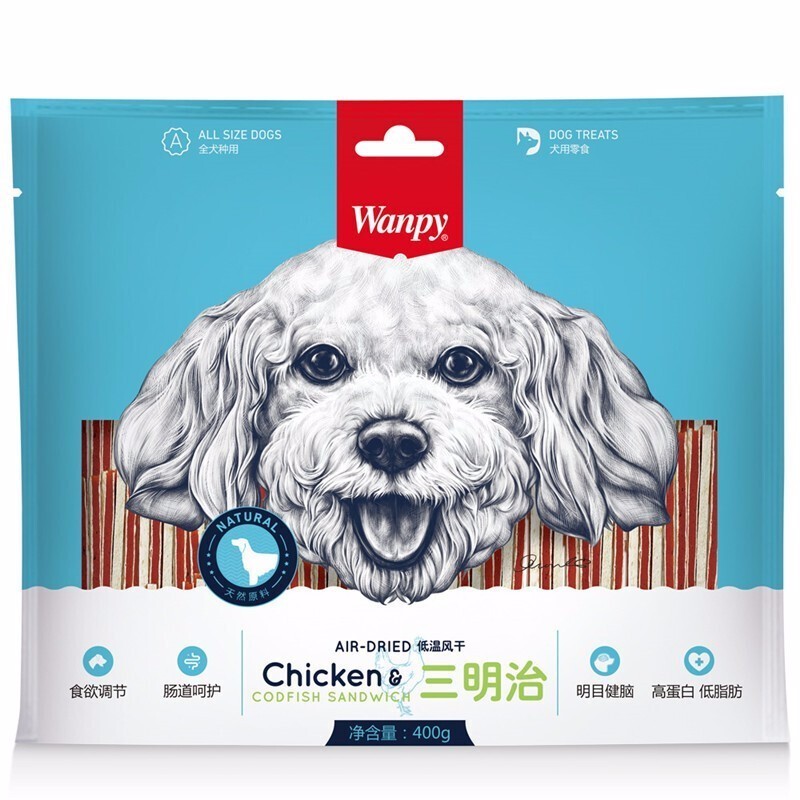 顽皮(Wanpy)狗狗零食宠物磨牙洁齿营养鸡肉干鸡肉卷 三明治400g