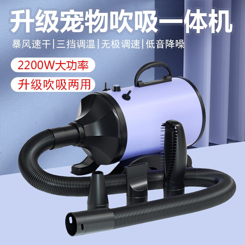 北极宠宠物吹水机狗狗大型犬小型猫咪吹毛神器家用大功率低噪烘干吹风机 紫色-升级吹吸一体机【2200W】
