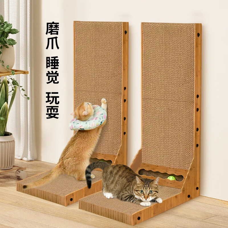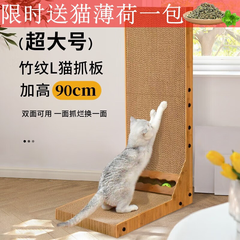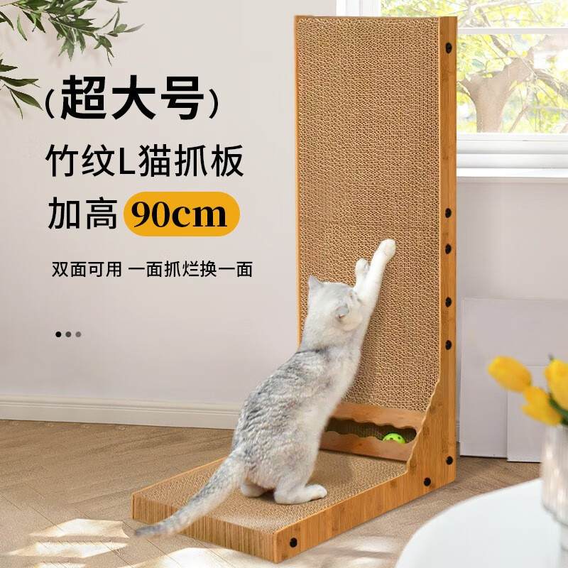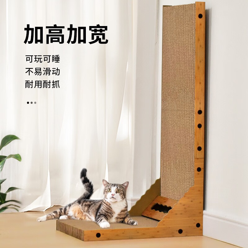 得酷(DEKU)猫抓板 立式靠墙不掉屑 磨爪耐咬蹭痒一体 逗猫猫咪自嗨玩具 L大型猫爪板 原色超大号90CM