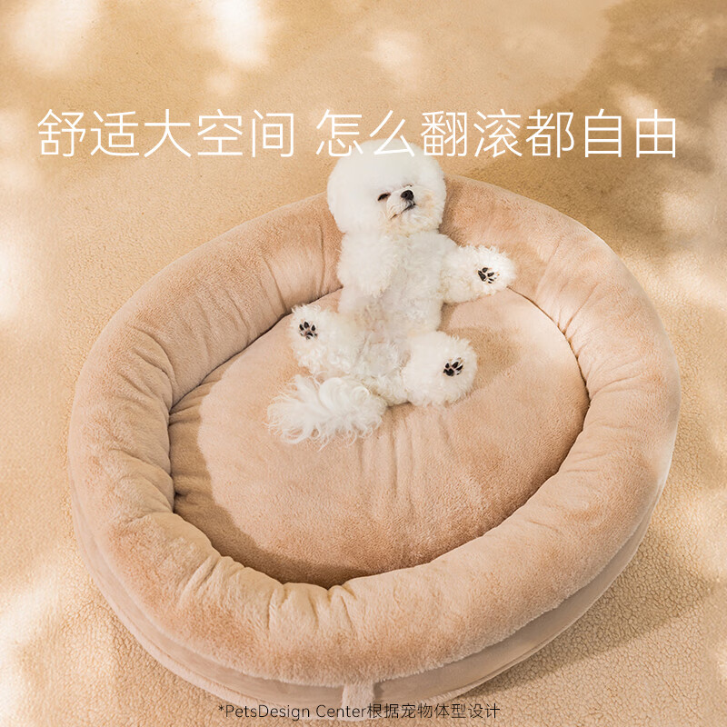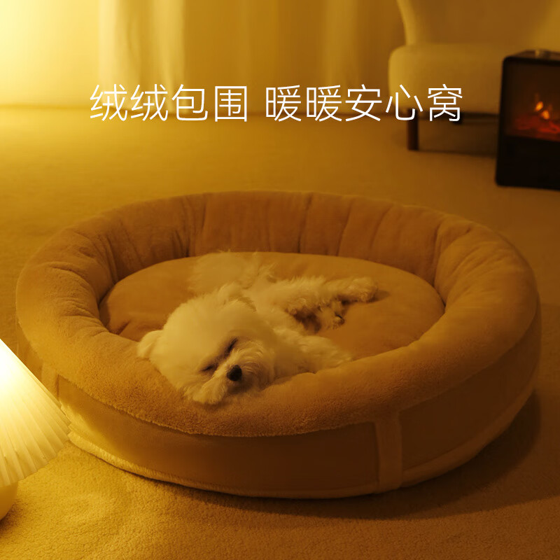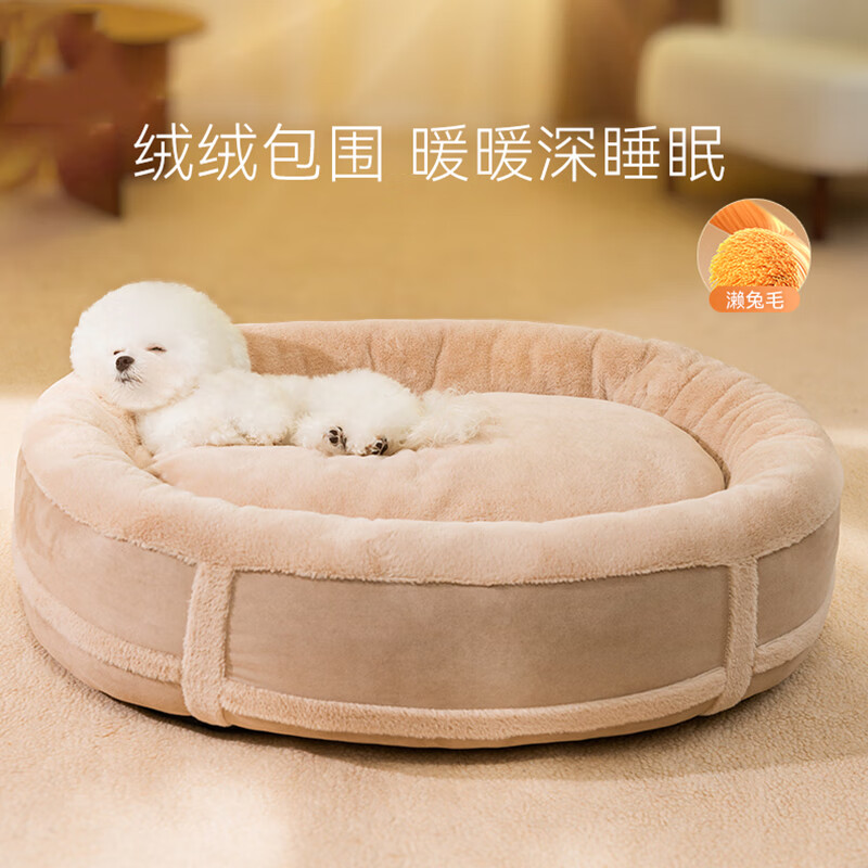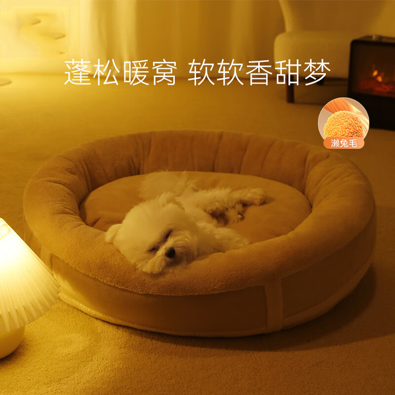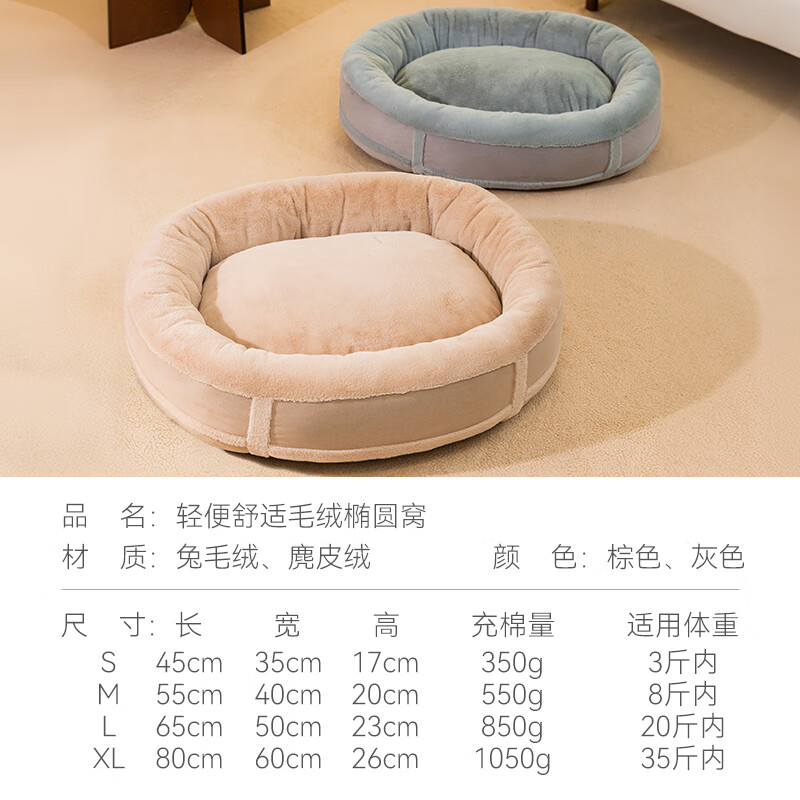 嬉皮狗(hipidog)秋冬季兔绒加厚保暖狗窝中小型犬泰迪比熊椭圆窝睡觉猫窝垫子用品 棕色 S(建议体重3斤内)