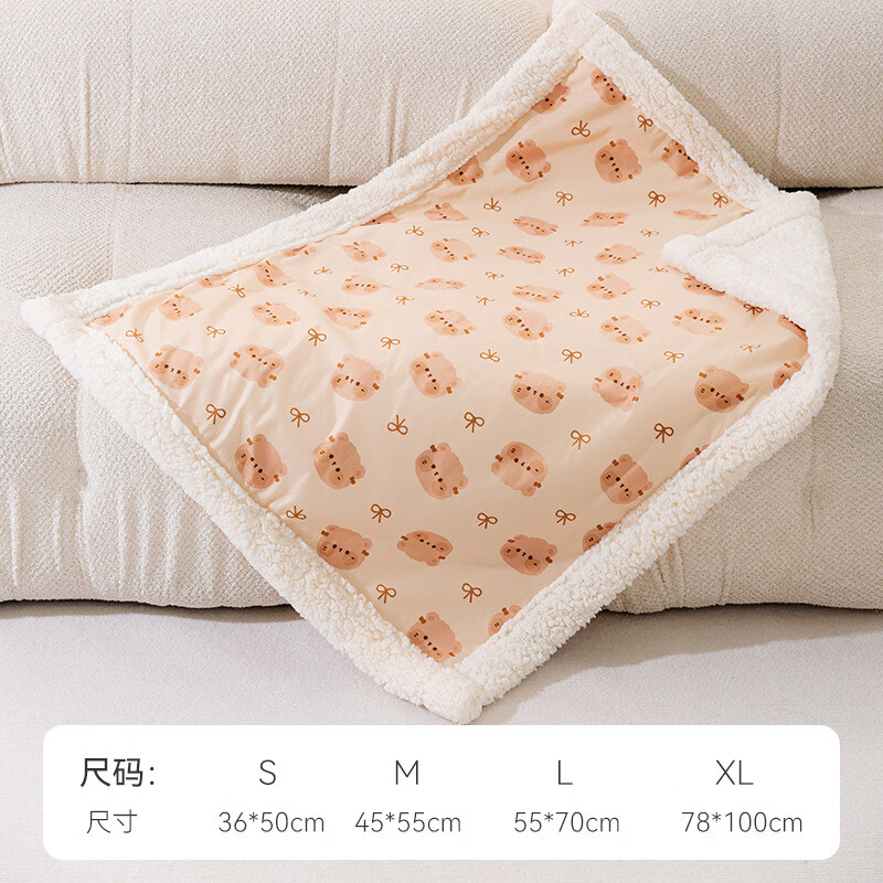 嬉皮狗(hipidog)宠物毛毯加厚羊羔绒秋冬季可爱小熊卡通猫咪被子垫子泰迪毯子 棕色小熊 L(55*70cm)