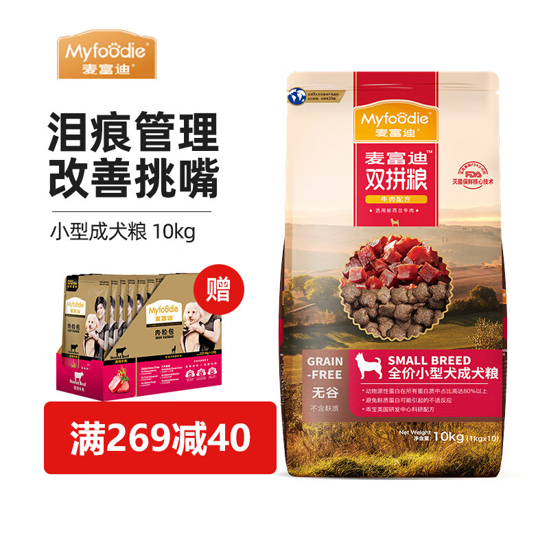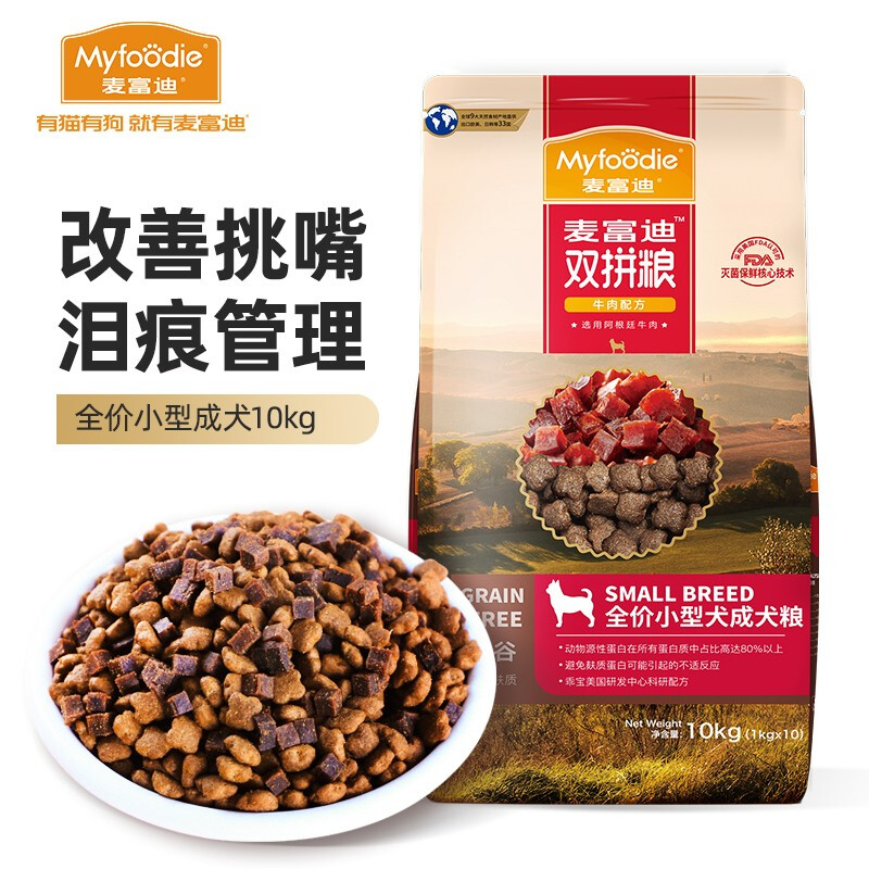 麦富迪狗粮 无谷牛肉双拼粮 成犬中大型小型犬通用金毛泰迪柯基 小型犬成犬粮10kg