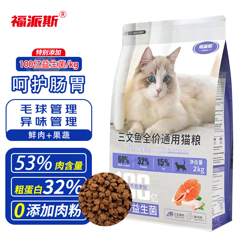 福派斯护肠胃猫粮成猫布偶幼猫三文鱼高蛋白增肥发腮英短加菲猫干粮2kg