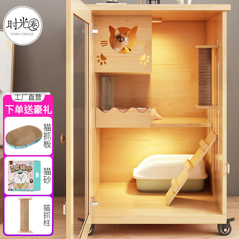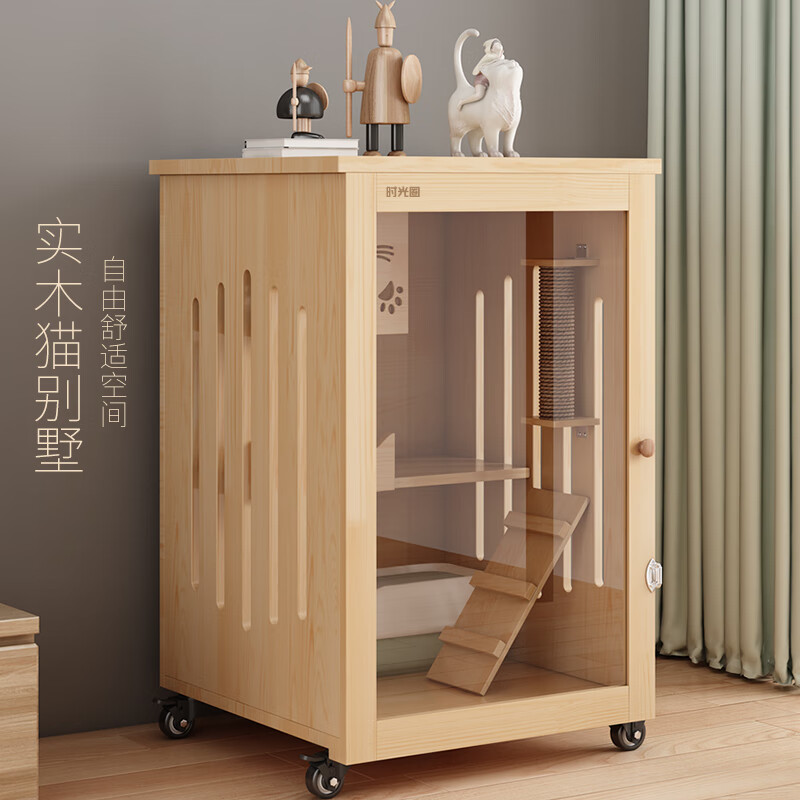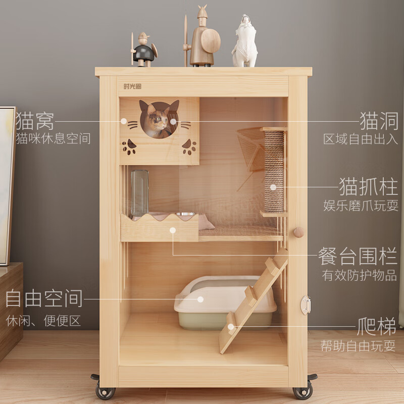 时光圈猫笼猫窝实木猫别墅猫笼子猫柜子猫咪产房90*60*60cm型号SM-G9961