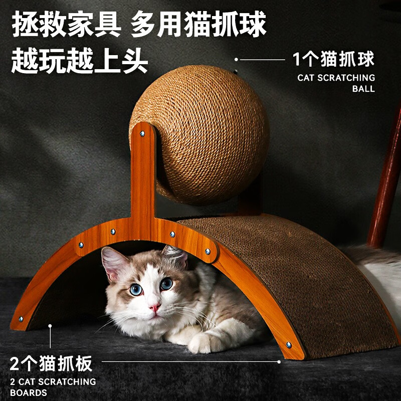 派乐特 猫抓板猫抓球宠物立式剑麻磨爪器猫玩具耐磨蜂窝瓦楞纸猫爪板不掉屑猫咪用品 大号【2合1拱桥摩天轮】
