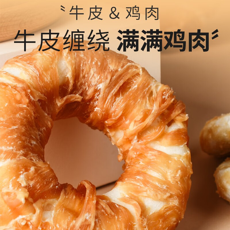 美吉尼狗狗零食磨牙棒大号鸡肉甜甜圈中大型犬金毛哈士奇换牙狗咬胶牛皮车轮卷缠肉洁齿互动防拆家低脂高蛋白 中号鸡肉圈2个(推荐中小型犬)