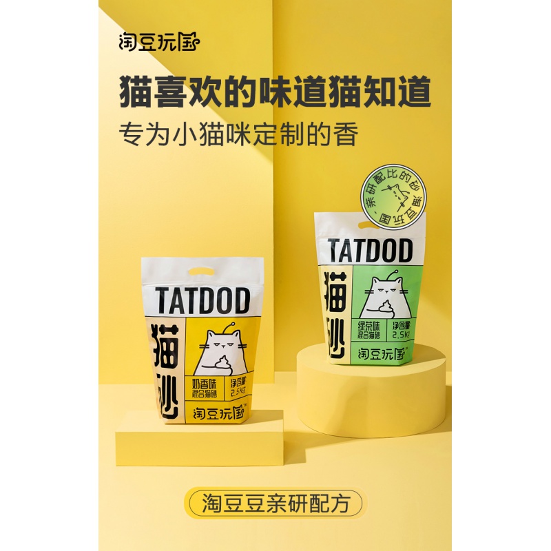 淘豆玩国天然混合猫砂豆腐猫砂 猫咪猫砂除臭珠 猫砂伴侣神器无尘2.5kg 绿茶味