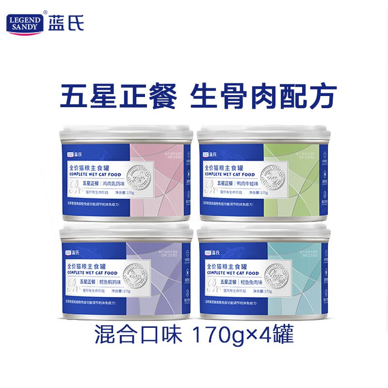 蓝氏LEGENDSANDY生骨肉全价主食猫罐头五星正餐 五星正餐混合口味170g*4罐