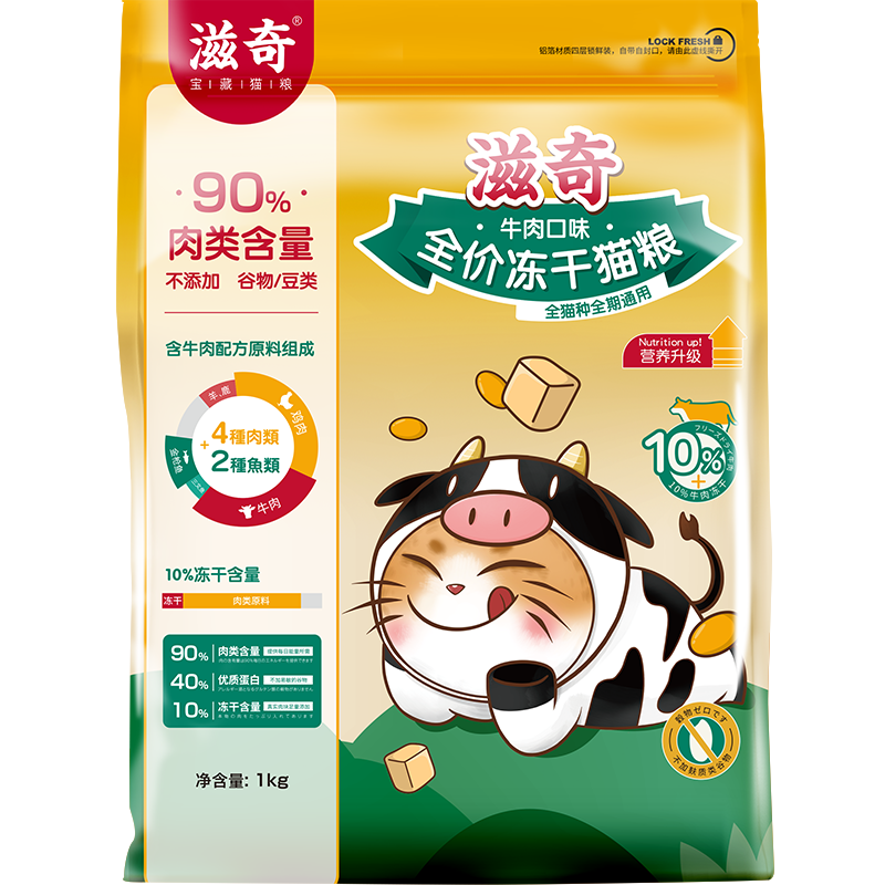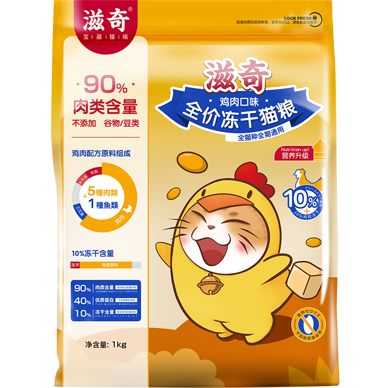 滋奇 滋90全价全期冻干双拼猫粮囤货装 鲜鸡肉幼猫成猫营养粮5Kg