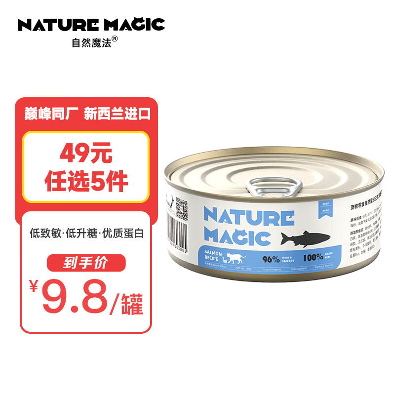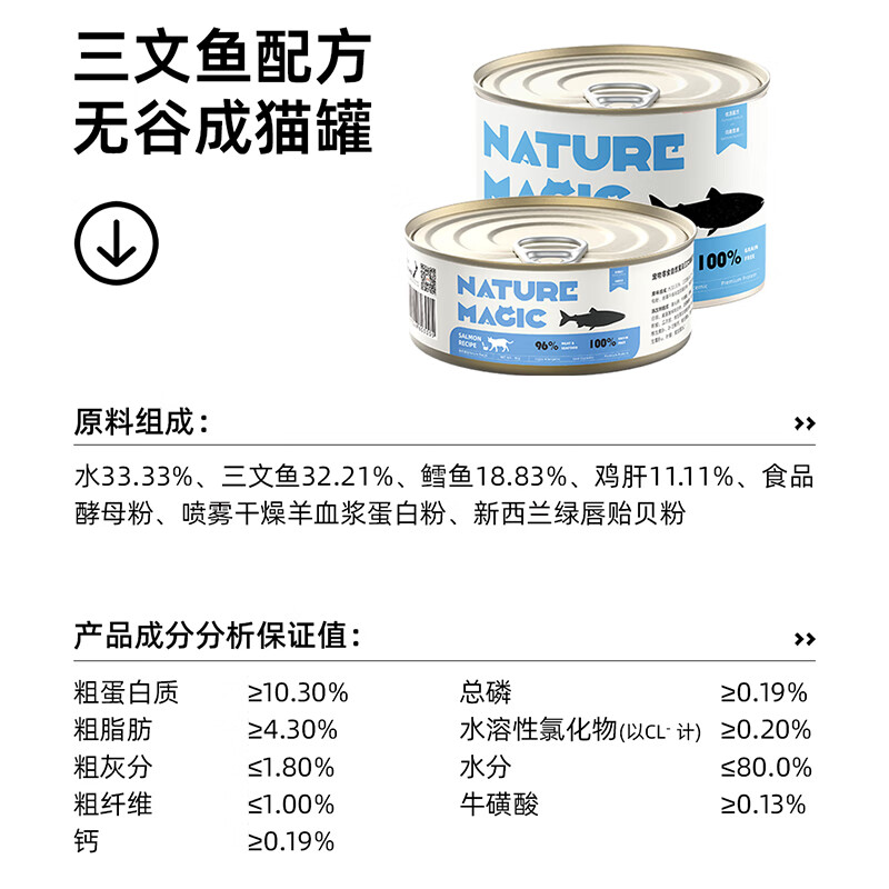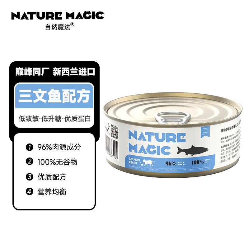 nature magic自然魔法 新西兰进口 三文鱼配方无谷猫罐头 成猫湿粮主食罐头90g