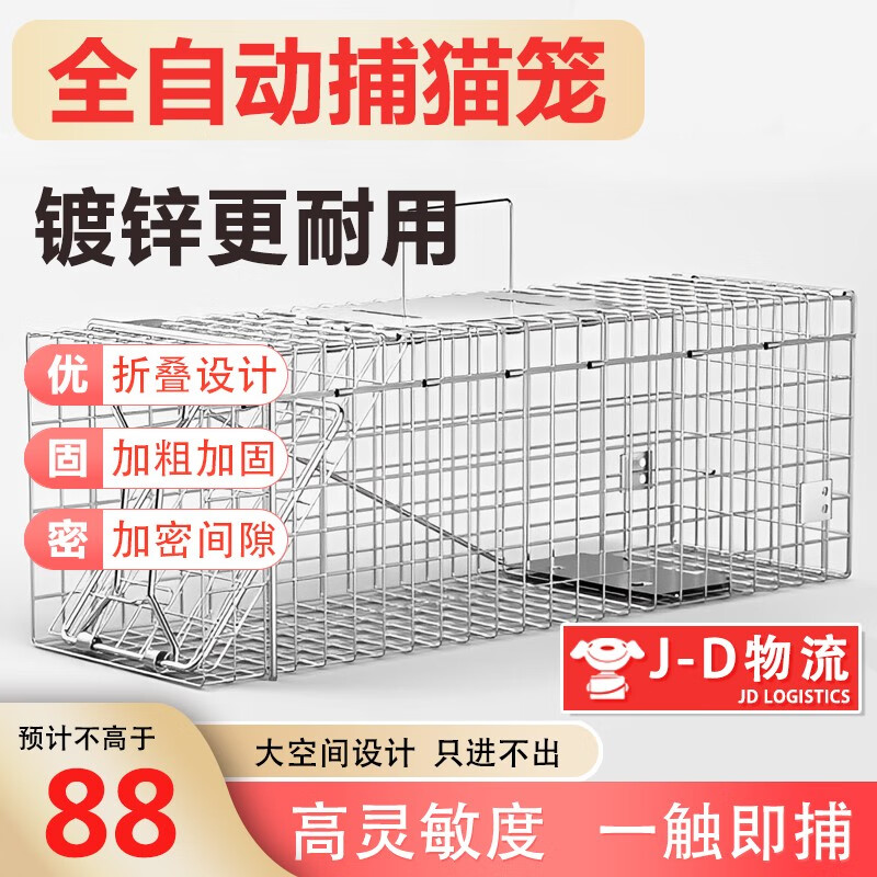 七友捕猫笼 诱捉捕器大号捉猫笼子抓猫神器 全自动流浪猫咪人道救助笼 62x18x22cm【适合1-6斤猫咪】