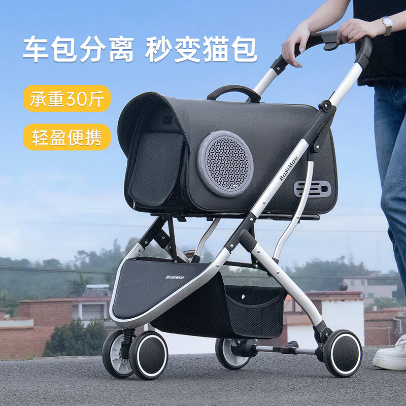 DO DO PET宠物推车小型犬猫咪可折叠遛狗手推车外出便携猫包分离狗狗小推车 黑加仑【新品】 可分离车包(建议承重30斤内)