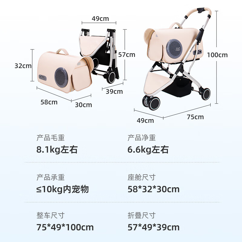 Ibiyaya依比呀呀FS2191宠物推车可拆卸折叠猫狗提篮泰迪比熊推车
