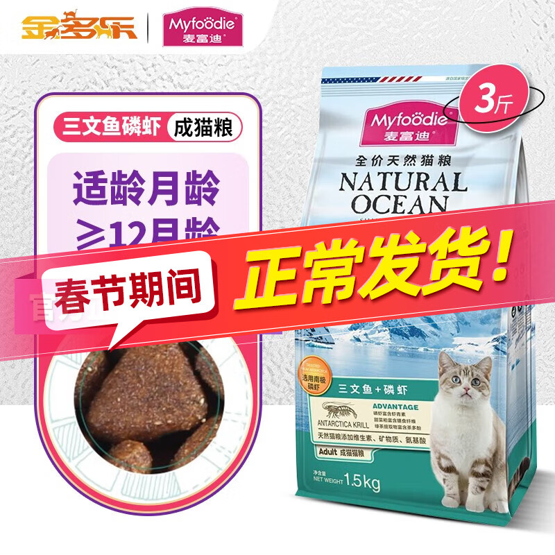 麦富迪(Myfoodie)(不打烊)猫粮三文鱼油全价磷虾成猫粮幼猫加菲英短美短猫咪主 三文鱼磷虾成猫1.5KG