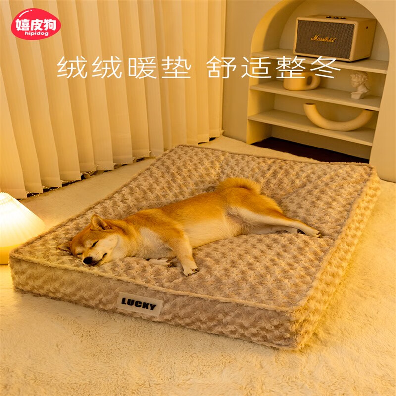 凛东狗窝四季通用可拆洗冬季保暖狗垫子睡觉用狗狗床猫窝冬天宠物用品 灰棕色#可拆洗 S45*35*6cm