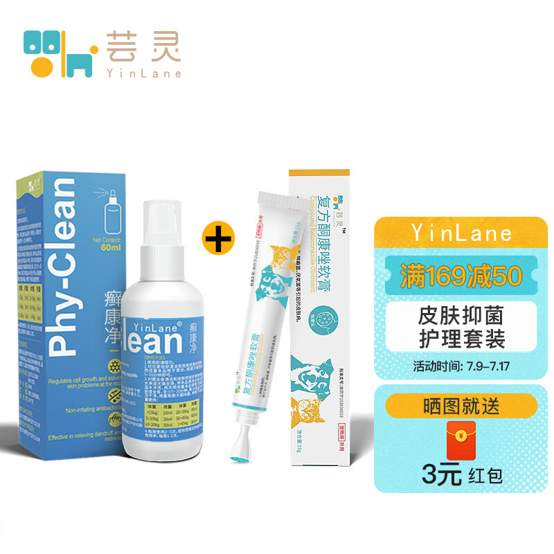 芸灵 宠物皮肤病药膏外用猫癣喷剂狗藓真菌藓克星感染掉毛湿疹发红药膏喷剂组合犬猫通用