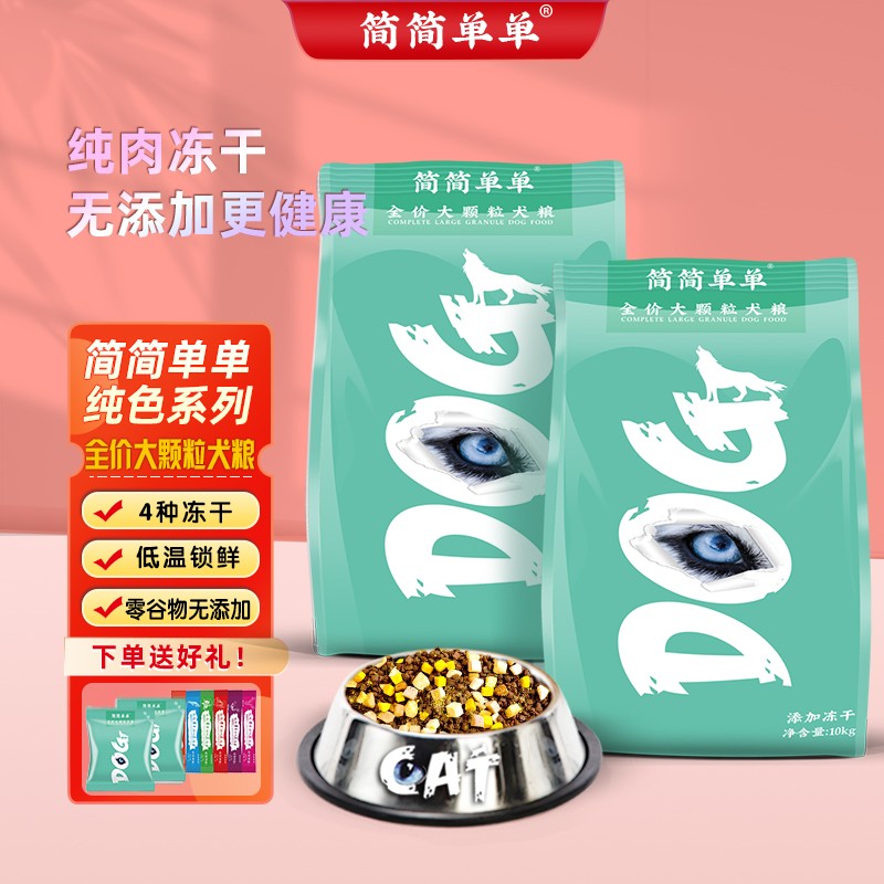 简简单单狗粮 成犬中大型犬通用犬粮 金毛萨摩拉布拉多 双拼冻干粮 全价大颗粒 10kg