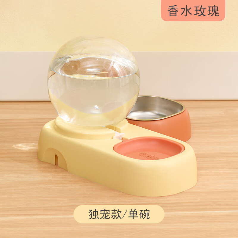 猫咪饮水机自动宠物狗狗喂食器喝水不湿嘴猫水盆流动水不插电水碗 x香水玫瑰(带滤芯) 不锈钢喂食碗