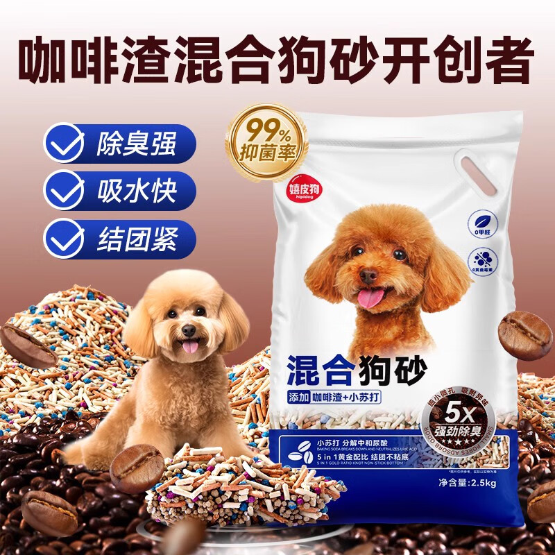 脆氏狗狗专用狗砂除臭混合型可冲厕所猫砂拉屎狗沙无尘豆腐猫沙易结团 咖啡渣混合狗砂-7.5KG 无规格