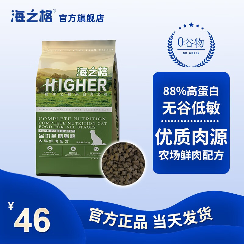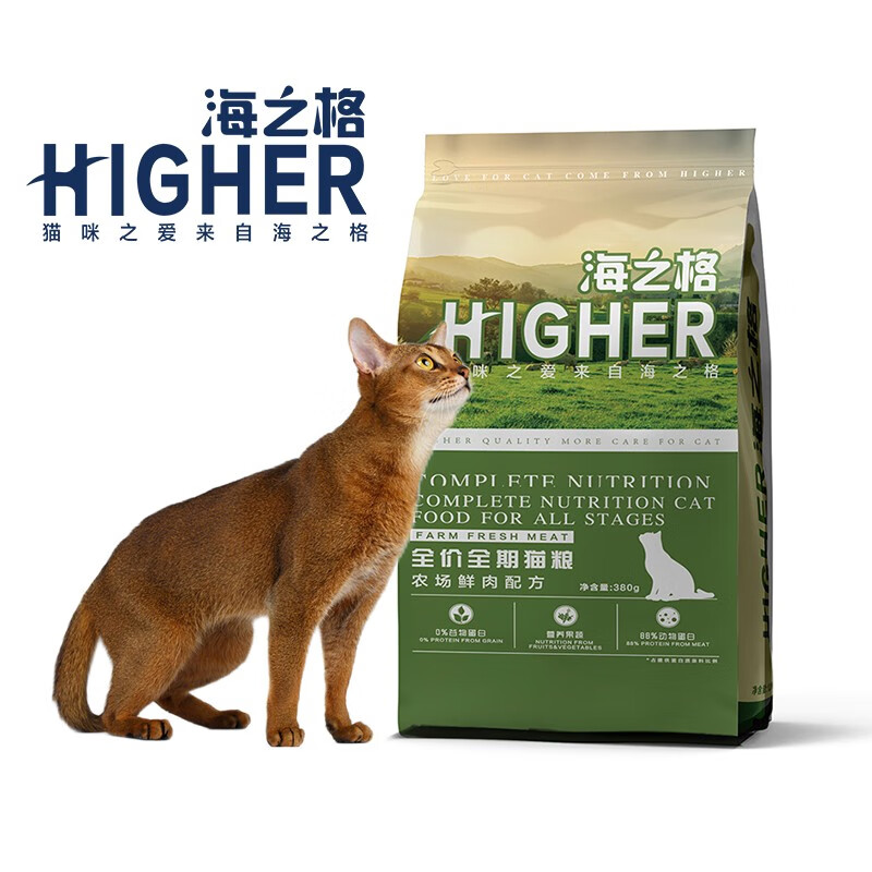 海之格鸡肉鸭肉三文鱼配方猫粮布偶蓝猫橘猫加菲英短室内天然无谷干粮护肤美毛强化免疫肠胃调理 农场鲜肉380g