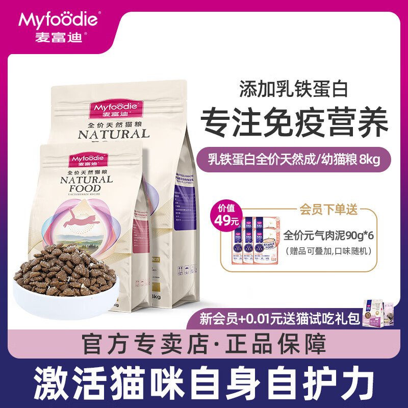 麦富迪(MYFOODIE)乳铁蛋白成幼猫粮冻干美短英短全价通用天然成幼猫试吃300g 成猫款8k.g【买就 全价元气肉泥9 1.g 【以实际口味为准】