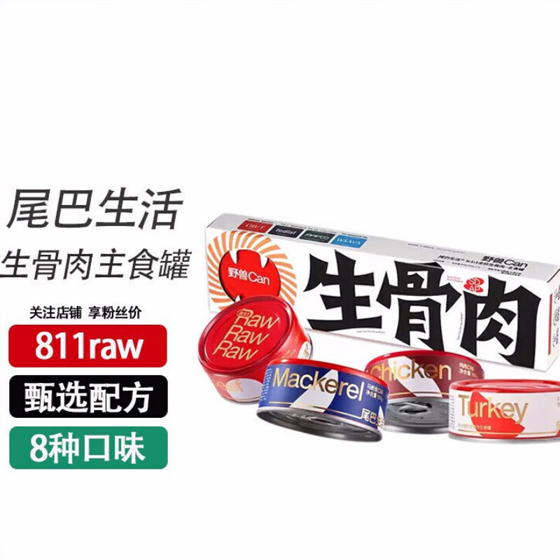 尾巴生活(FURRYTAIL)raw811生骨肉主食罐猫罐头零食湿粮包猫咪成幼猫营养发腮 811【鸡/马鲛鱼/牛/火鸡】100g*4