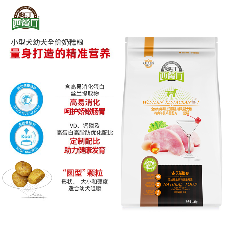 奥丁 西餐厅奶糕狗粮通用型 1.5KG3斤
