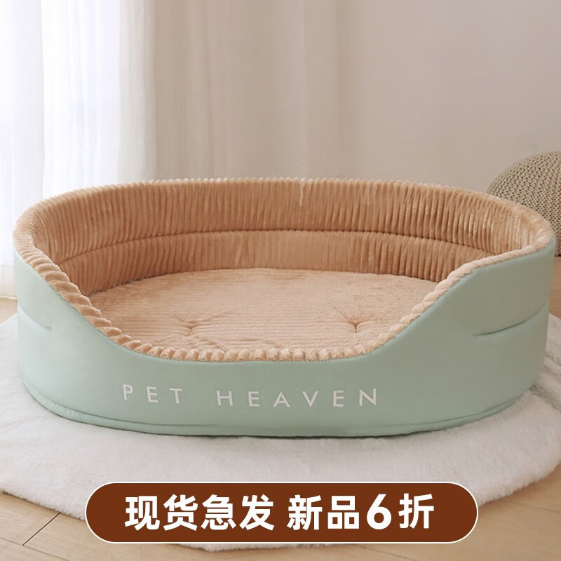 hoopet狗窝四季通用狗床中大型犬睡觉可拆洗宠物狗垫子狗狗窝秋冬季保暖 绿卡其狗窝【单窝】 XL 100*82*26(推荐100斤内)