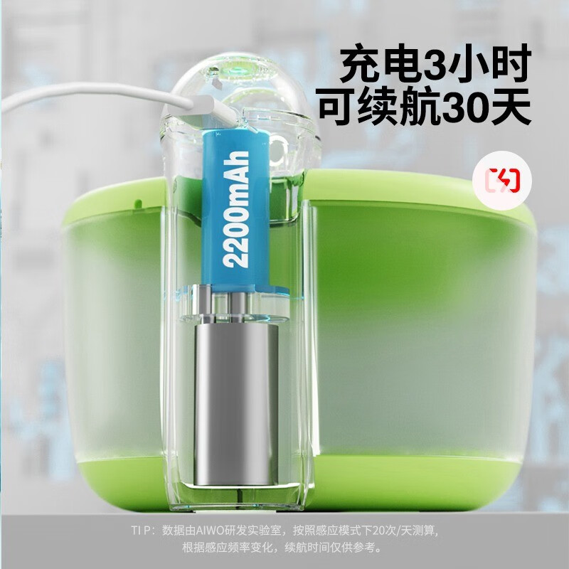 嬉皮狗(hipidog)猫咪自动饮水机不插电宠物充电饮水器喝水无线循环流动饮水机狗狗 苹果绿【低噪 感应 不漏电】