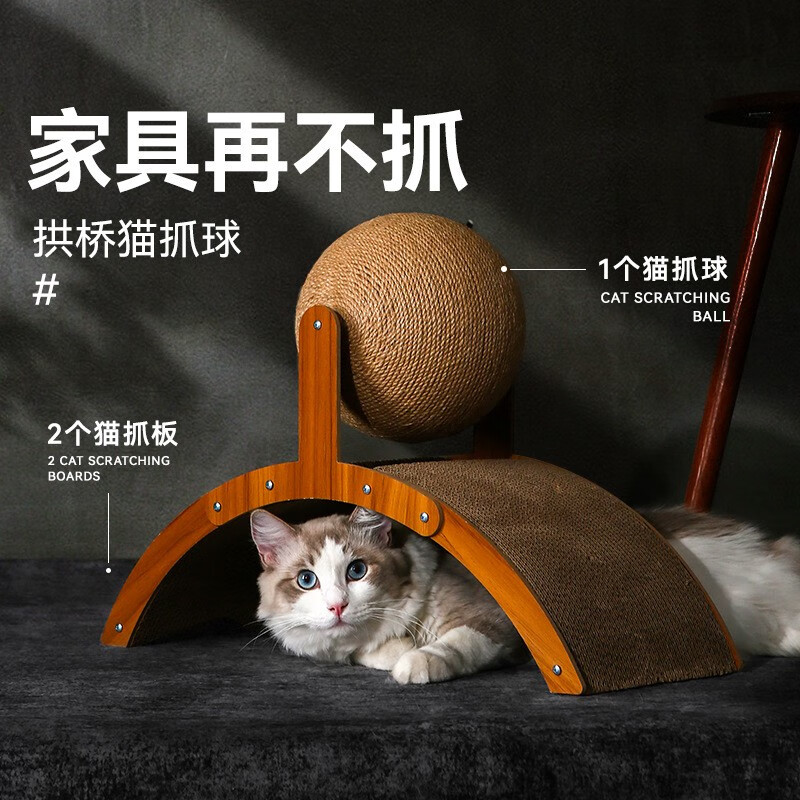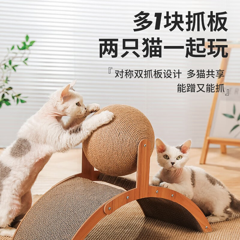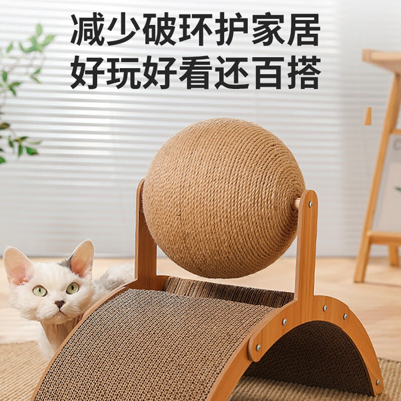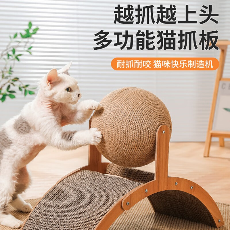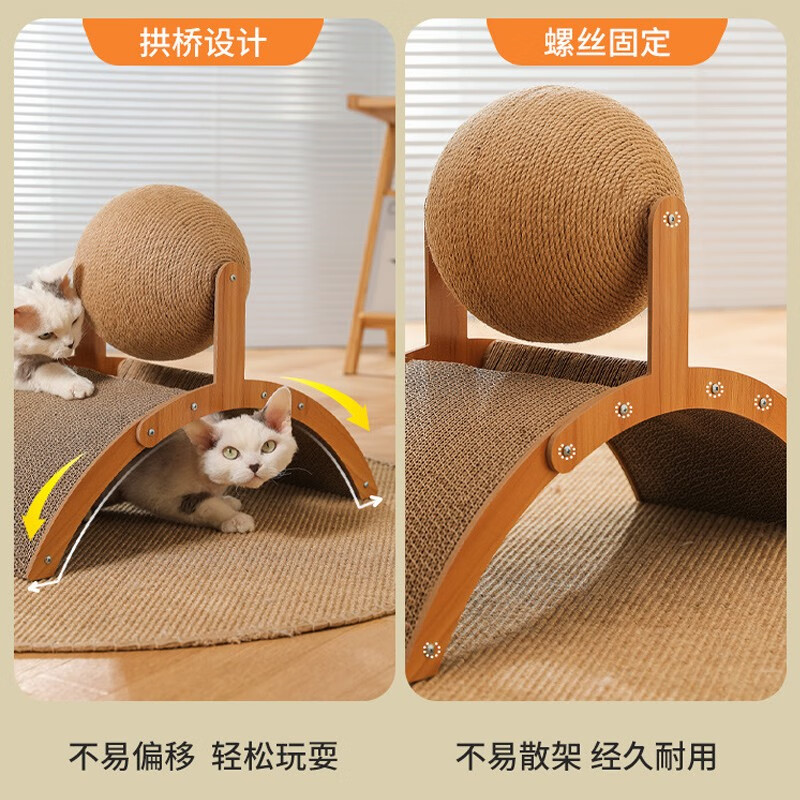 瑜品佳 大号拱形剑麻猫抓板 摩天立式猫爪板耐抓磨用不易掉屑幼小猫咪瓦楞纸磨爪器自嗨解闷玩具球宠物 拱桥猫抓球36×25×20厘米